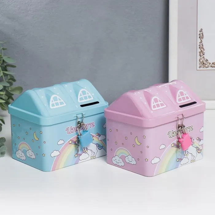 Копилка для денег с замком и ключом «Единорог», металл, 10×9.5×12 см, МИКС