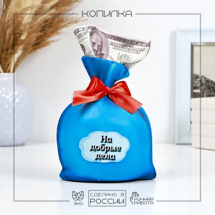 Копилка для денег «Мешок: на добрые дела», гипс, голубая, 17 см