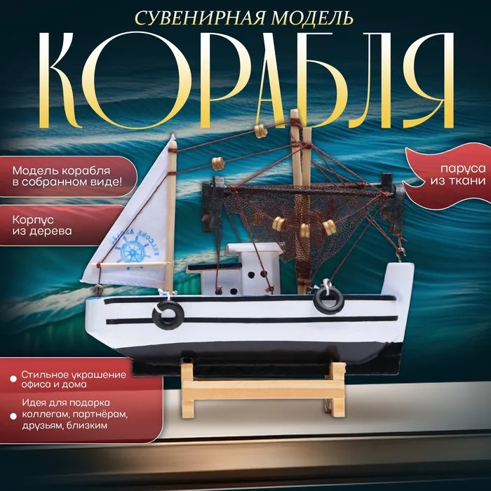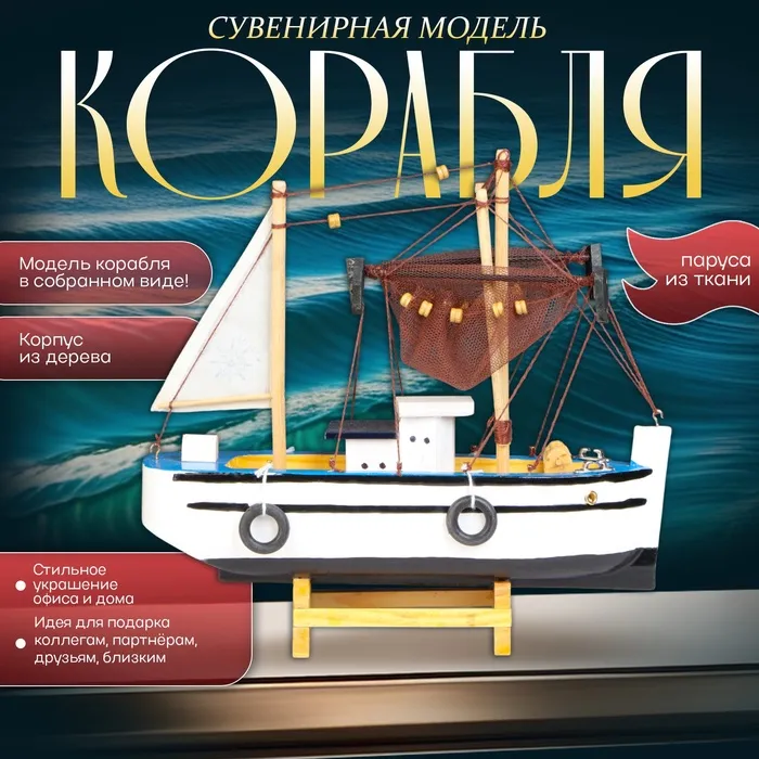 Сувенирная модель корабля «Рыбацкое судно», 16×16см