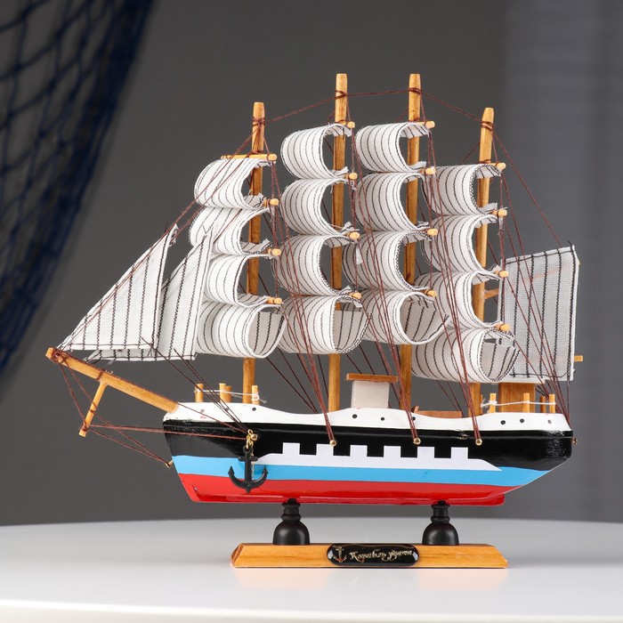Сувенирная модель корабля «Кариста», трёхмачтовый с белыми парусами, 40×5.5×33 см