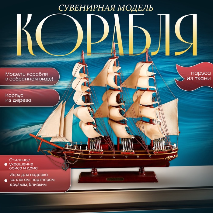 Сувенирная модель корабля «Трёхмачтовый», паруса бежевые, 49×42×8 см