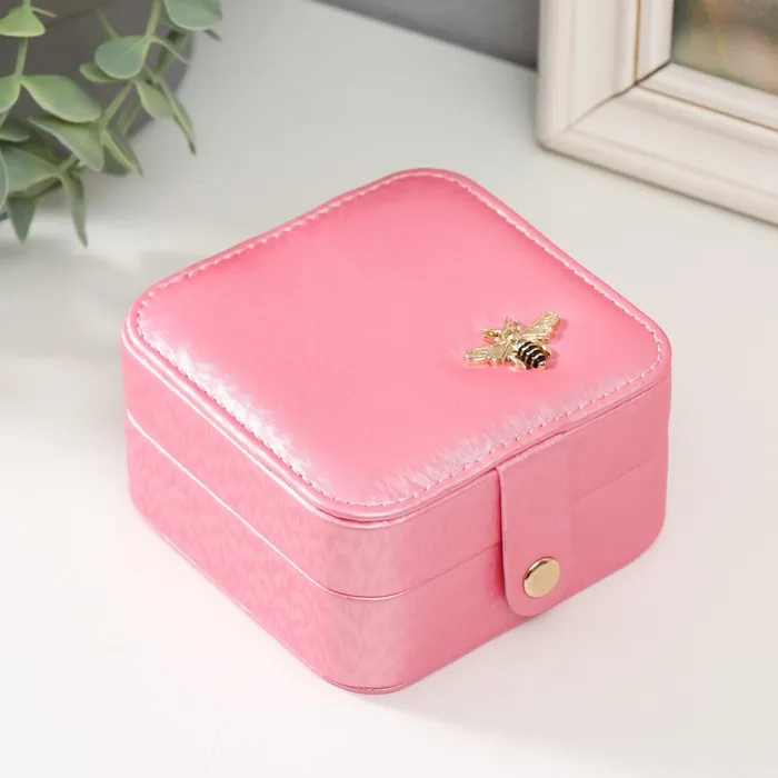 Шкатулка текстиль для украшений "Перелив с украшением" розовая 10х10х6 см