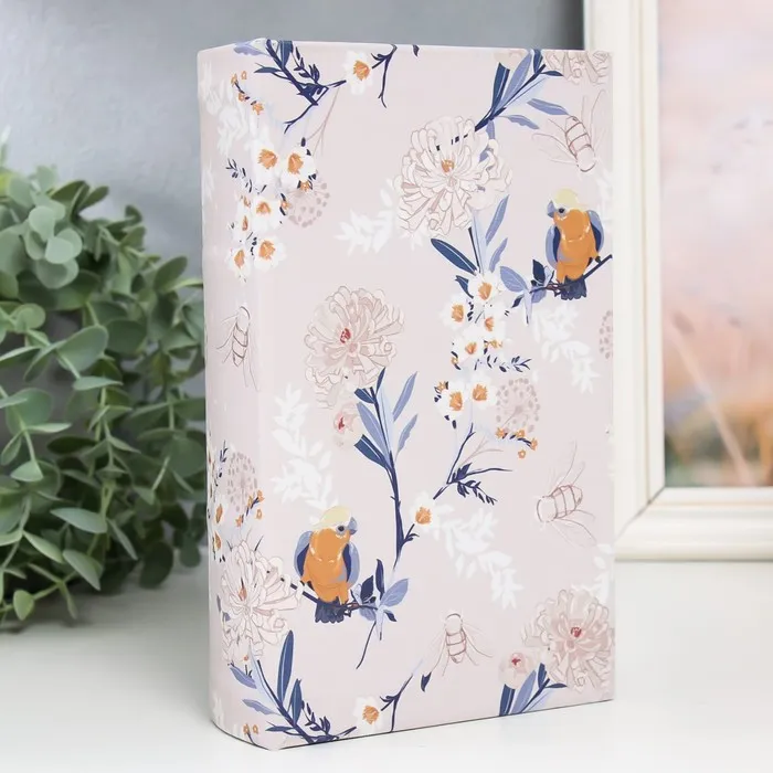 Шкатулка книга-сейф «Белые цветы и жёлтые птицы», дерево, искусственная кожа, 21×13×5 см