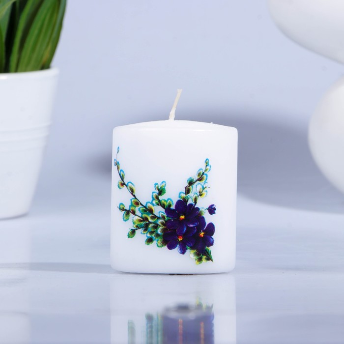 Свеча парафиновая с деколью «Ветка вербы с цветком»