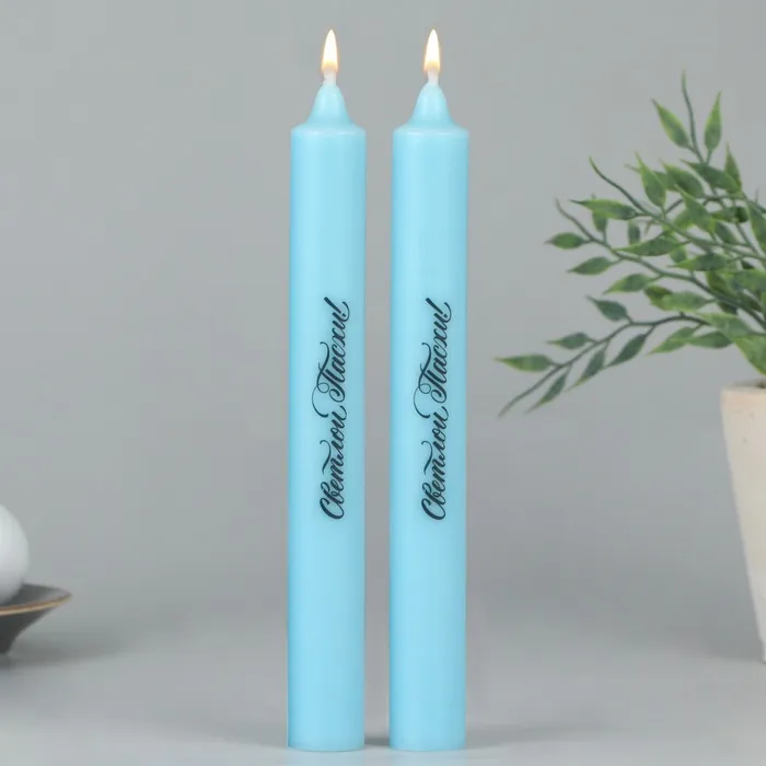 Свечи высокие с нанесением «Светлой Пасхи!», 2 шт., голубые, 19 х 2,1 см.