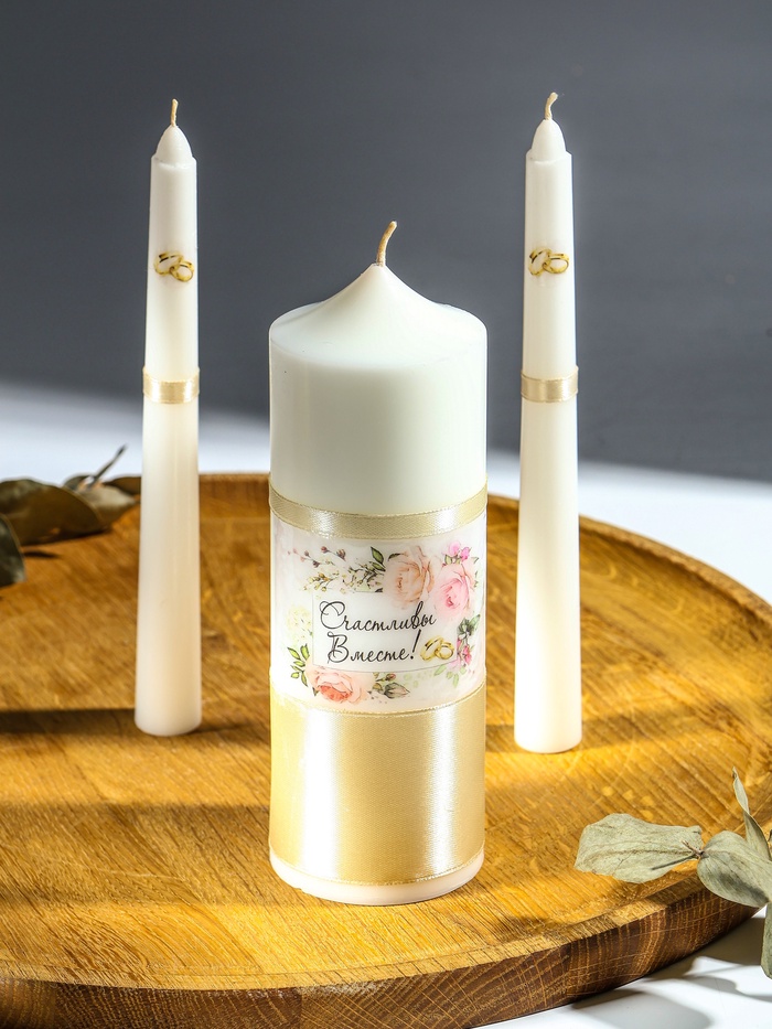 Свечи свадебные «Счастливы Вместе» набор 3 шт., (17 см и 2 шт. по 18 см)
