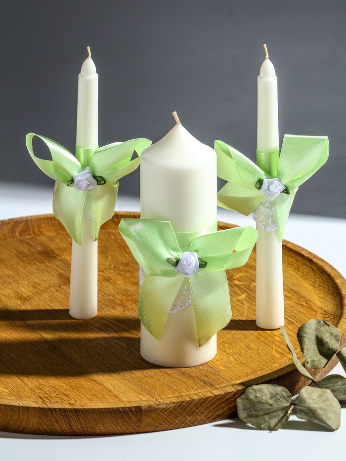 Свечи свадебные «Пышный» набор 3 шт. (16 см и 2 шт. по 18 см), мятный