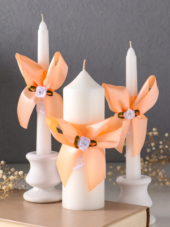 Набор: свечи свадебные «Пышный», 3 шт. (16 см и 2 шт. по 18 см), абрикосовый