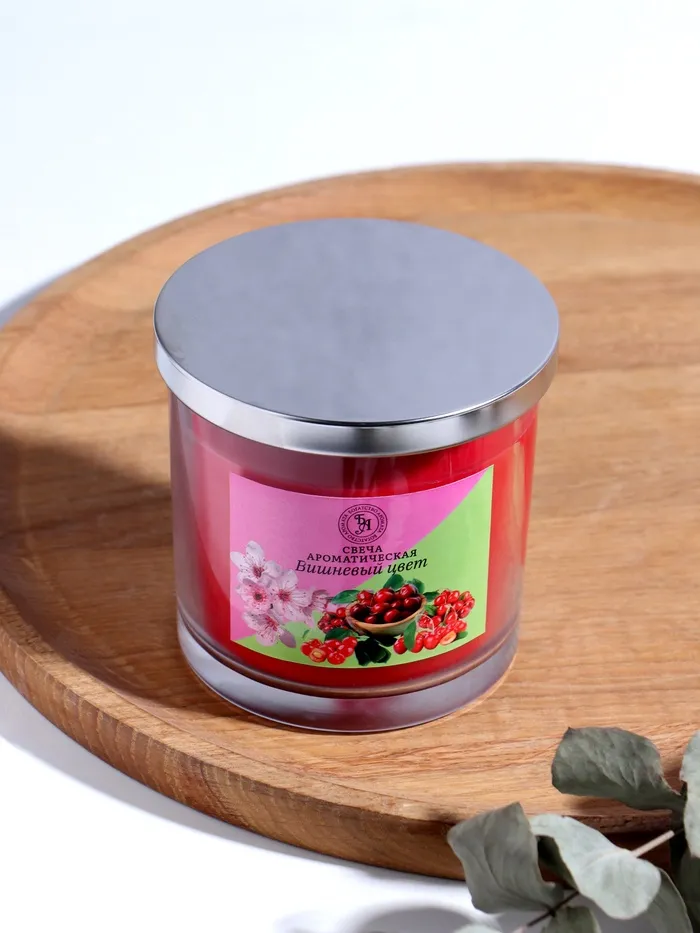 Свеча ГИГАНТ ароматическая в стакане "Вишнёвое цветение", соевый воск, 10х10 см