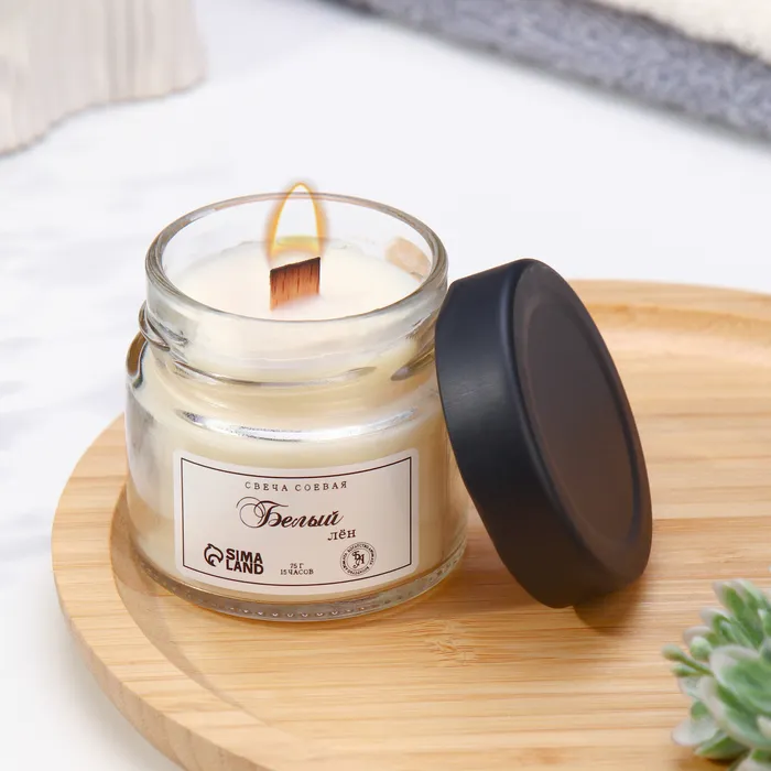 Свеча ароматическая из соевого воска в банке, 75 г, белый лён
