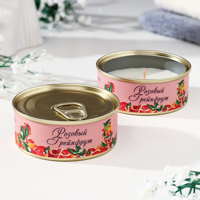 Натуральная свеча в жестяной банке из соевого воска "Розовый грейпфрут", 7,5х3 см
