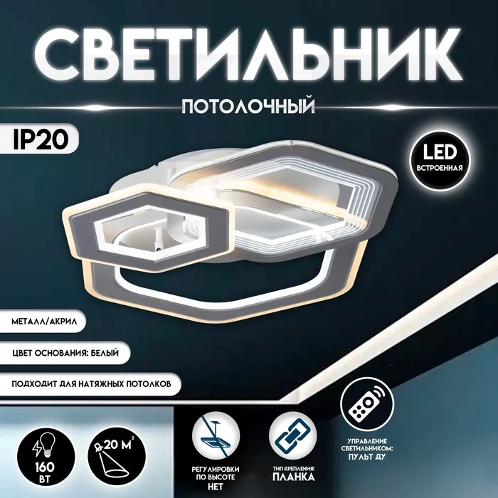 Светильник потолочный светодиодный с ПДУ BayerLux «Дариана», LED, 160 Вт, 3000-6000 Вт, белы,й 60×42×9.5 см