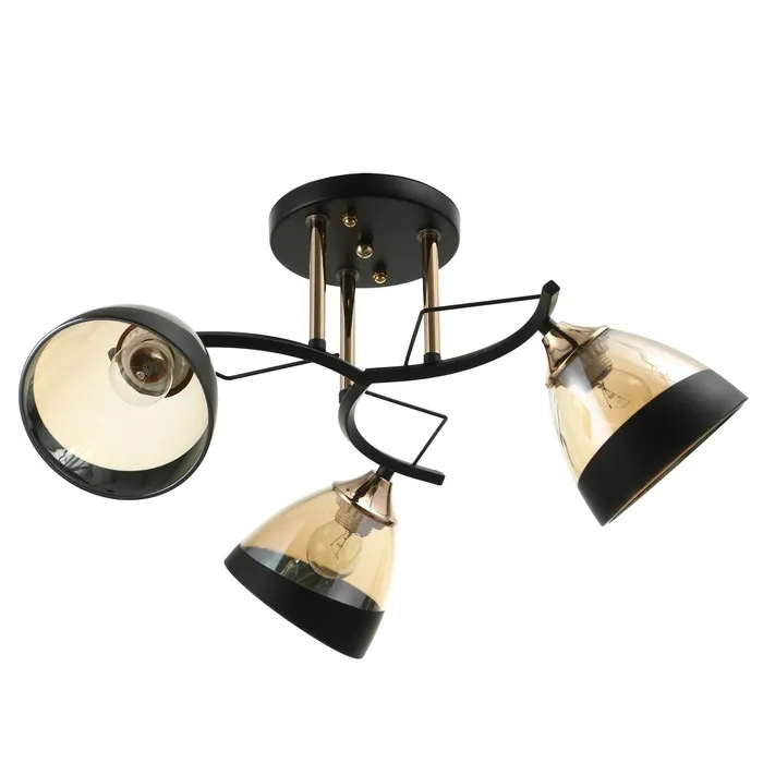 Люстра потолочная BayerLux «Аделла», 3хЕ27, 40 Вт, чёрно-золотой, 60×60×26 см