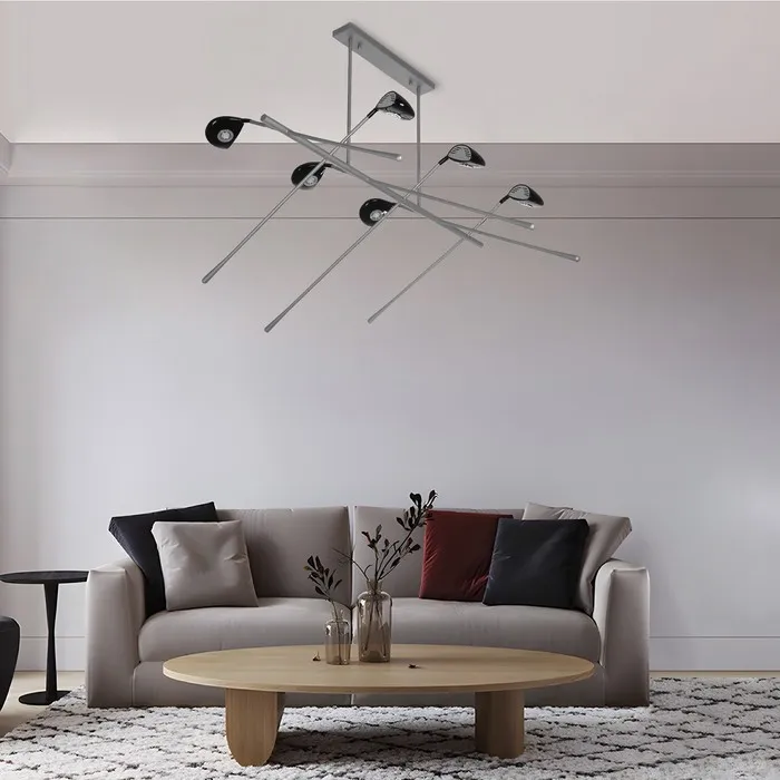 Люстра «6 клюшек» 120 × 73 см, 6 × 10 Вт, алюминий, пластик, свечение тёплое белое