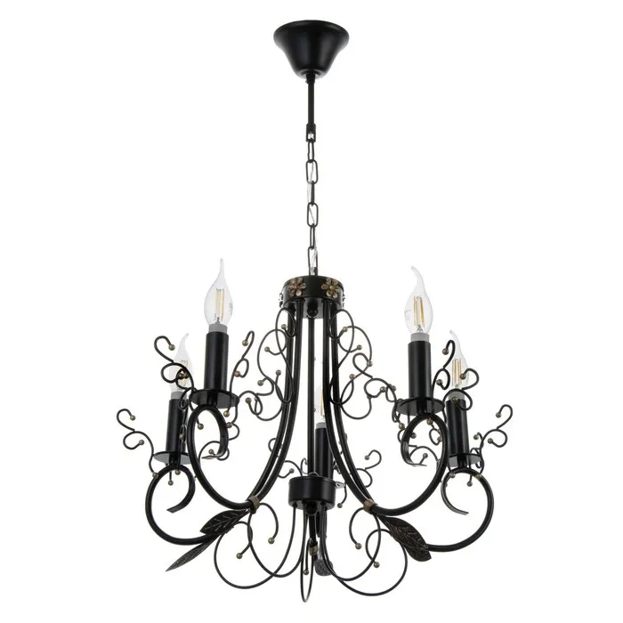 Люстра потолочная BayerLux «Ариэль», 5xE14, 40 Вт, черно-золотой, 58×58×40.5-100 см