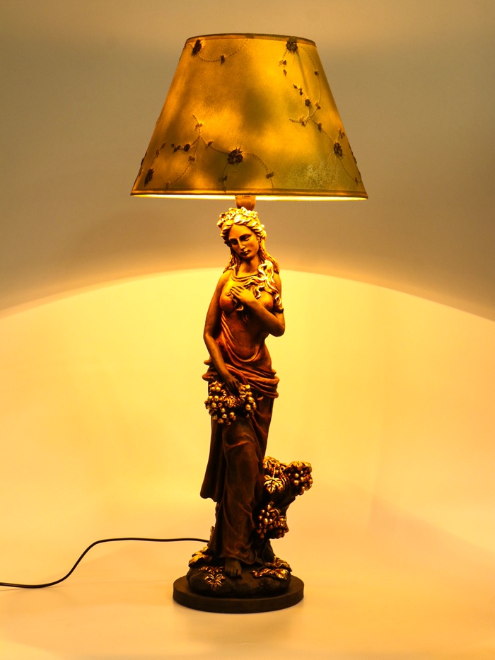 Лампа настольная декоративная с абажуром «Девушка с виноградом», 71×30×30 см, под бронзу