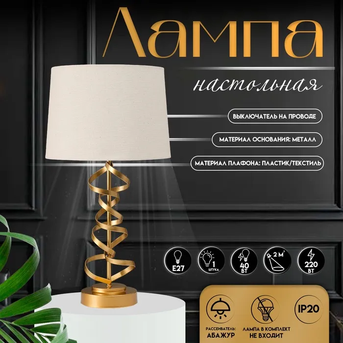 Лампа настольная «Адель» 1×40 Вт Е27 220 В золото 21×21×37 см RISALUX