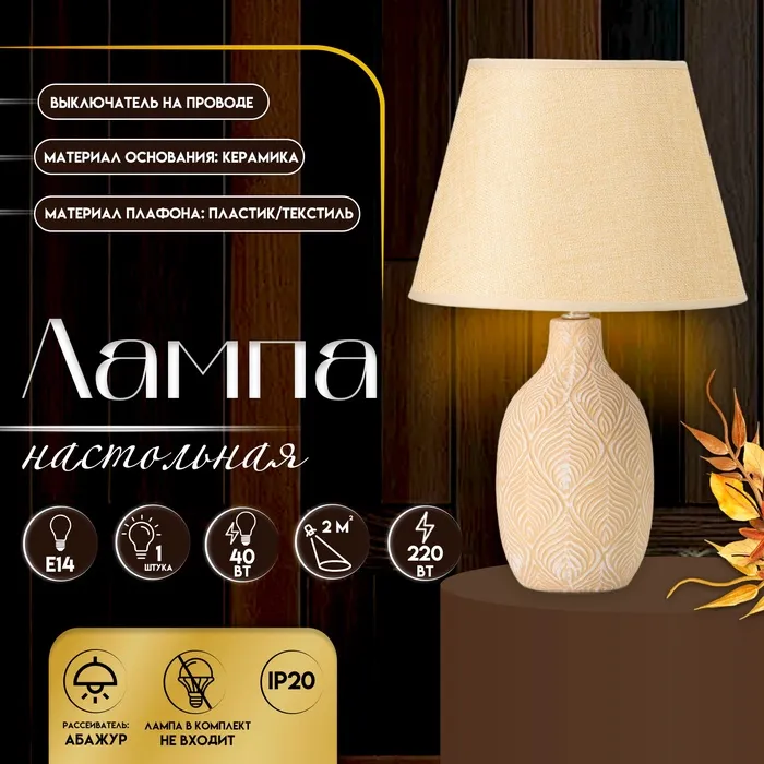 Настольная лампа с абажуром RISALUX «Джесси», Е14, 40 Вт, бежево-белый, 25×25×39 см