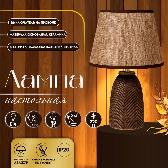 Настольная лампа с абажуром RISALUX «Аззерра», Е14, 15 Вт, 20×20×32 см