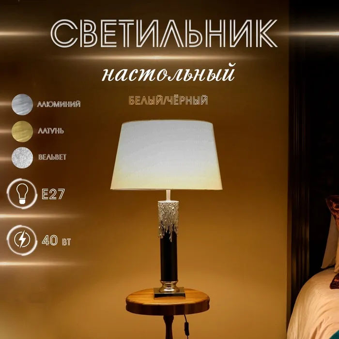 Лампа настольная "Вероника" 1х40Вт Е14 черный/белый 20х20х31см