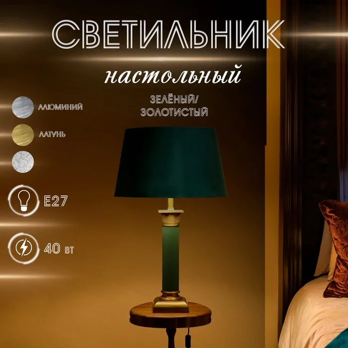 Светильник настольный "Гринч" зелёный/золотистый 1х40Вт, Е27, 50х50х89 см