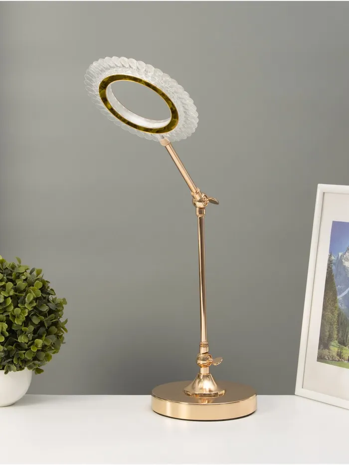 Лампа настольная прищепка сенсор 3 режима LEDх14 "Золотая полоса" лупа USB, 3ААА 44х15х6 см RISALUX