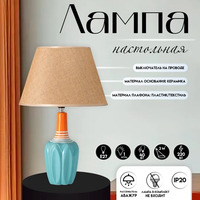 Настольная лампа «Эльмира» Е14 40 Вт оранжевый 22.5×22.5×37 см RISALUX