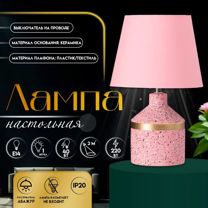 Настольная лампа с абажуром RISALUX «Лавр», 1×Е14, 40 Вт, розовый, 20×20×35 см