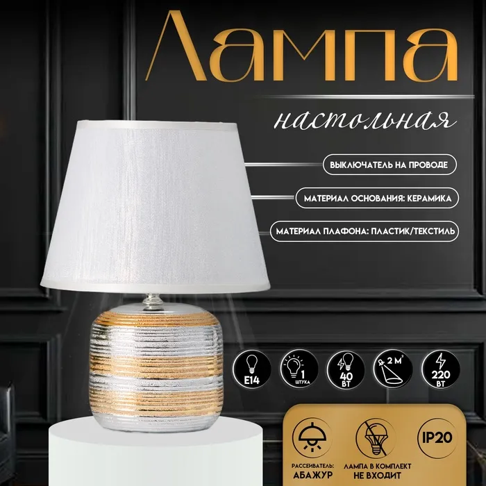 Настольная лампа с абажуром RISALUX «Брон», Е14, 40 Вт, бело-золотой, 18×18×27 см