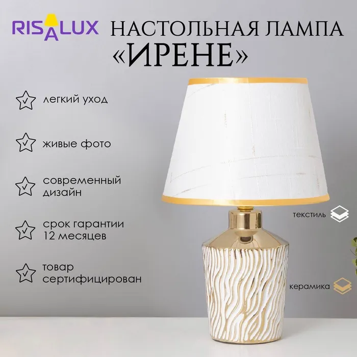 Лампа настольная «Ирене» 1×40 Вт Е14 белый/золото 22×22×36 см