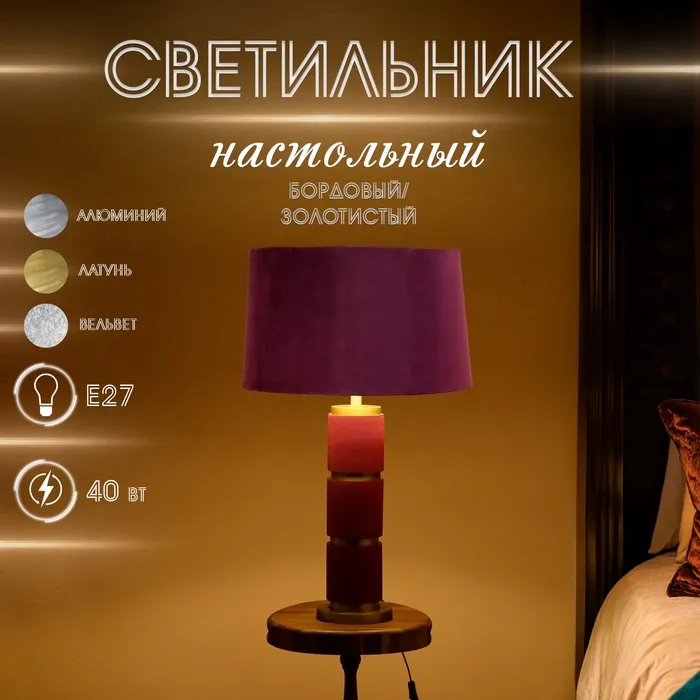 Светильник настольный "Бордо" бордовый/золотистый 1х40Вт, Е27, 56х56х85 см