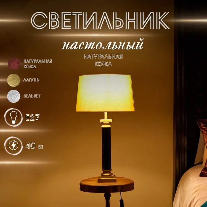 Светильник настольный "Листер" натуральная кожа 1х40Вт, Е27, 56х56х85 см