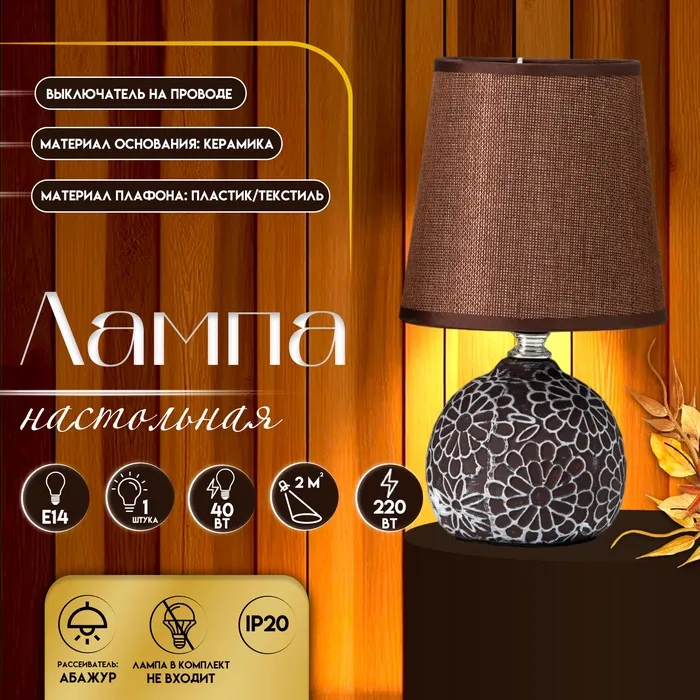 Настольная лампа с абажуром RISALUX «Элис», Е14, 40 Вт, коричневый, 13×13×25 см
