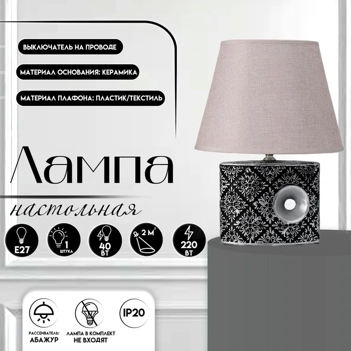 Настольная лампа с абажуром RISALUX «Небраска», 1×40 Вт, Е27, серый, 20×20×32 см