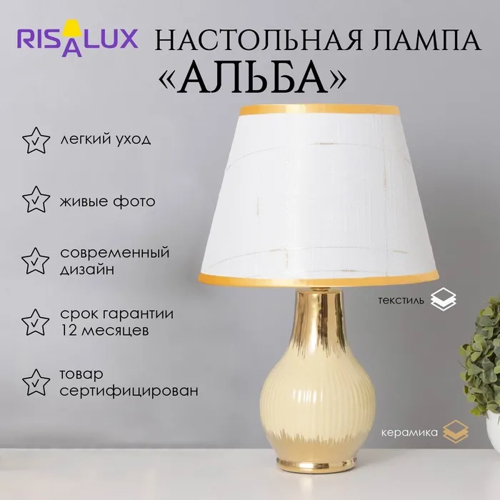 Лампа настольная «Альба» 1×40 Вт Е14 бежевый/золото 24×24×40 см