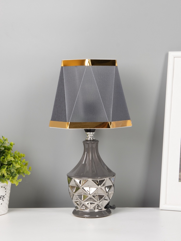 Лампа настольная керамика «Вильнюс» серая с серебром Е14 40 Вт RISALUX