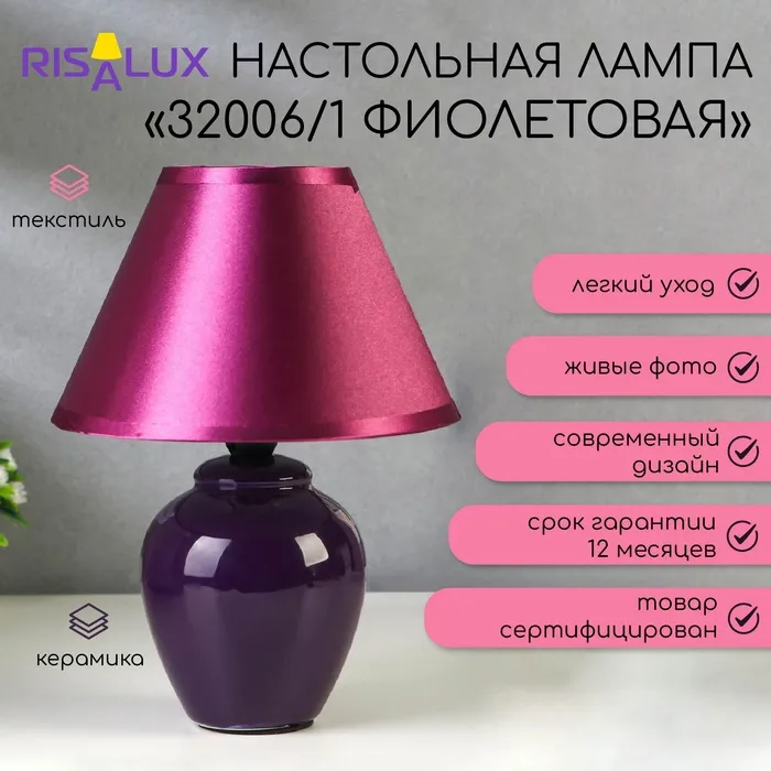 Лампа настольная 32006/1 E14 40 Вт фиолетовый 17×17×24 см RISALUX