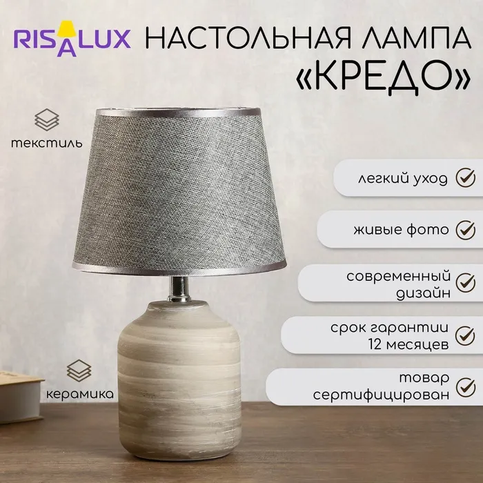 Лампа настольная «Кредо» 1×40 Вт E14 серый 20×20×34 см RISALUX