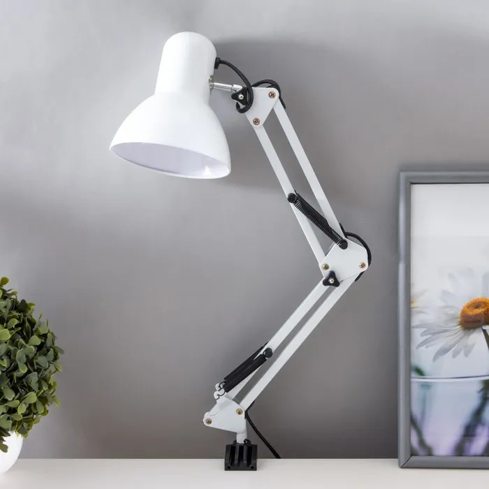 Лампа настольная Е27, h=55 см, шарнирная, на зажиме (220В) белая RISALUX