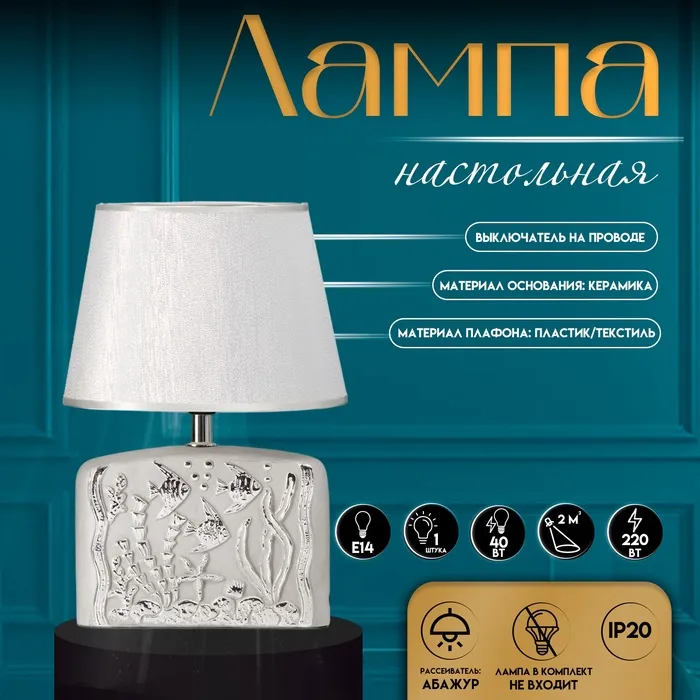 Настольная лампа с абажуром RISALUX «Океан», Е14, 40 Вт, серебро, 20×15×30 см
