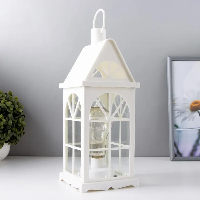 Ночник «Фонарь-домик», белый, от батареек 3ААА 35×13.5×13.5 см RISALUX