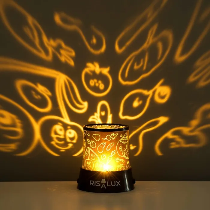Ночник-проектор "Фрукты. Правильное питание" LED USB/от батареек черный 10,8х10,8х11,5 см RISALUX 9