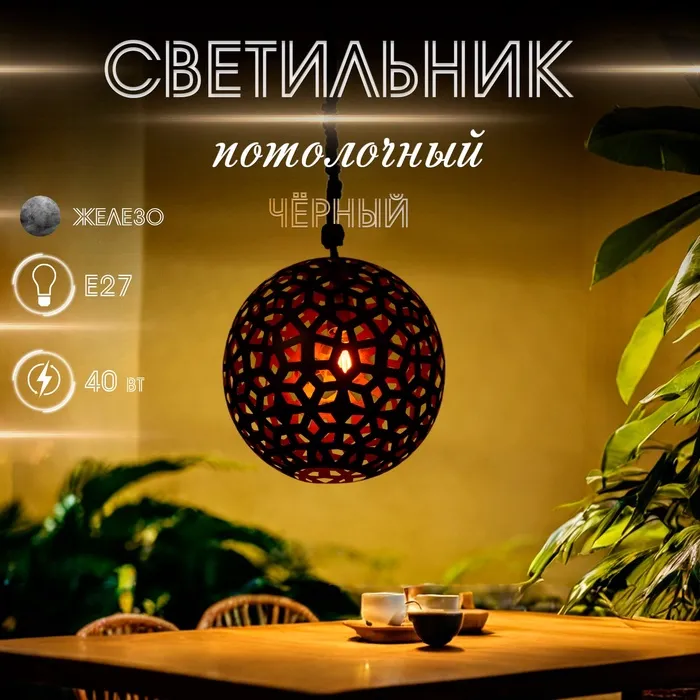 Светильник потолочный «Крокс», 1×40 Вт, Е27, 42×42×45 см, чёрный