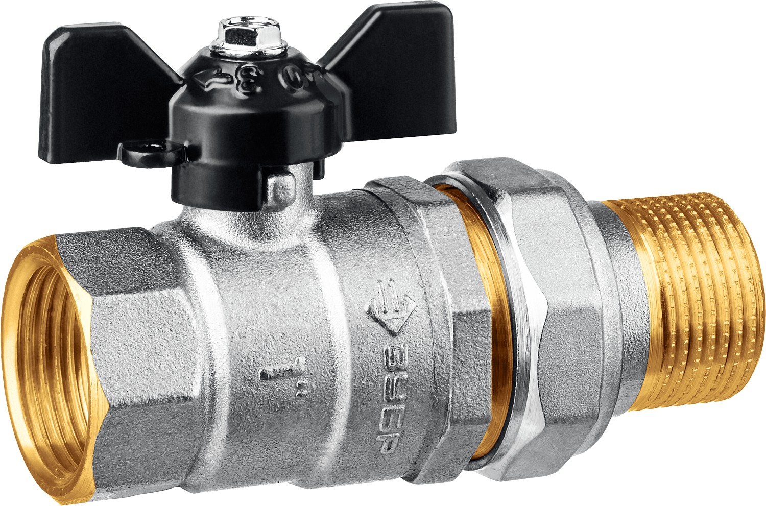 ЗУБР d 1″, ручка ″бабочка″, ″мама-папа″, полнопроходной шаровой кран с накидной гайкой (51321-1)