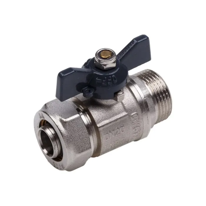 Кран шаровой AQUALINK, PN 10, 1/2" х 16 мм, наружная резьба/цанга, бабочка, никелированный