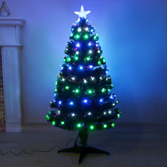 Искусственная ёлка с гирляндой Led «Зимнее волшебство. Пучок радужный», 120 см, d нижнего яруса 60 см, 125 ПВХ веток отгибаются
