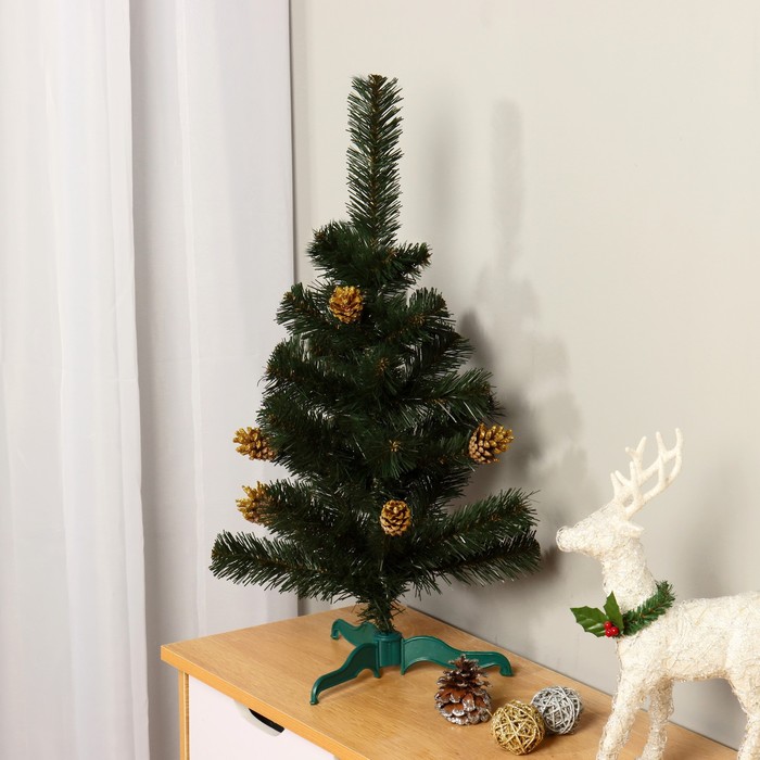 Искусственная ёлка настольная «Рождественская», 60 см, с золотыми шишками, ПВХ ветки отгибаются