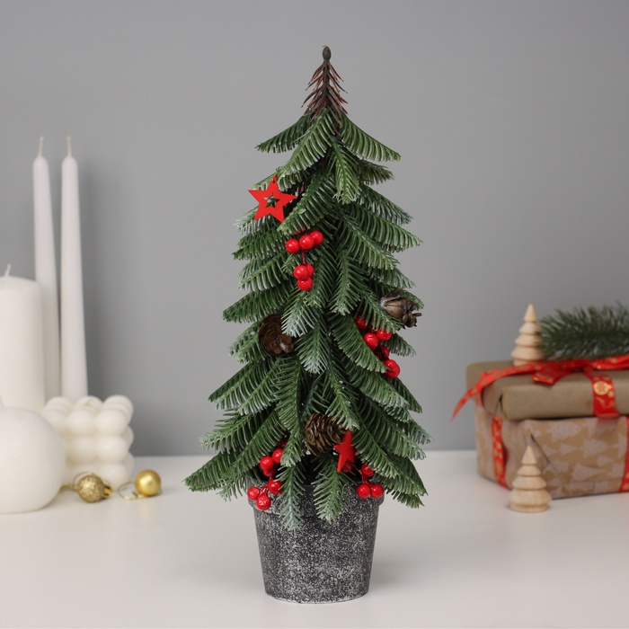 Искусственная ёлка литая настольная «Зимнее волшебство. С ягодками, в горшочке», 22×7.5 см, ветки отгибаются