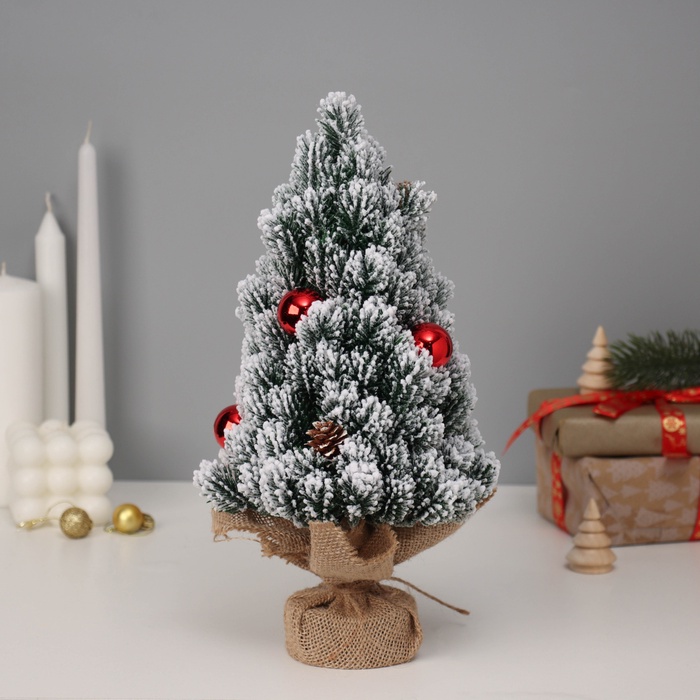 Искусственная ёлка литая настольная «Зимнее волшебство. С шарами и шишками, в мешочке», 31×14 см, ветки отгибаются