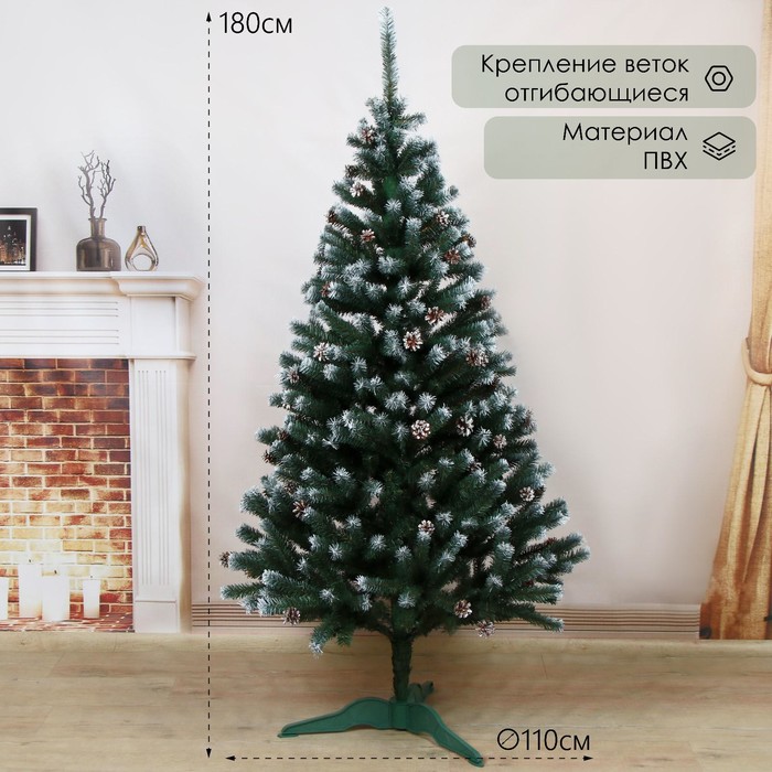Искусственная ёлка с шишками и инеем «Таёжная элитная»,180 см, d нижнего яруса 110 см, ПВХ ветки отгибаются